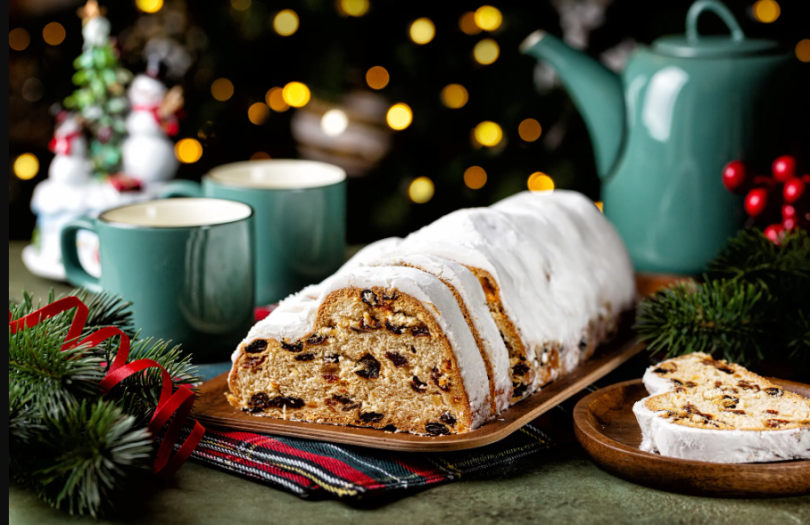 - Stollen – сладкий кекс с сухофруктами и марципаном, посыпанный сахарной пудрой.