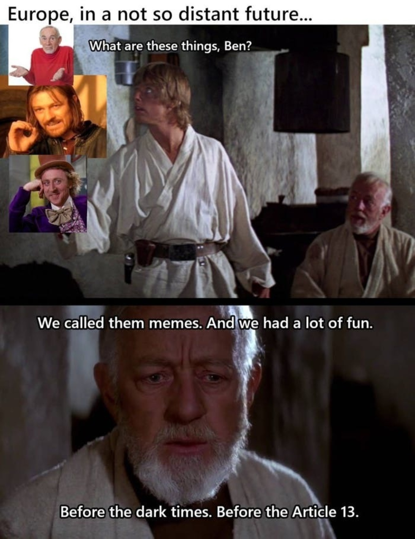 «Что это такое, Бен? // Мы называли это мемами. И нам было очень весело. До тёмных времён, до статьи 13»