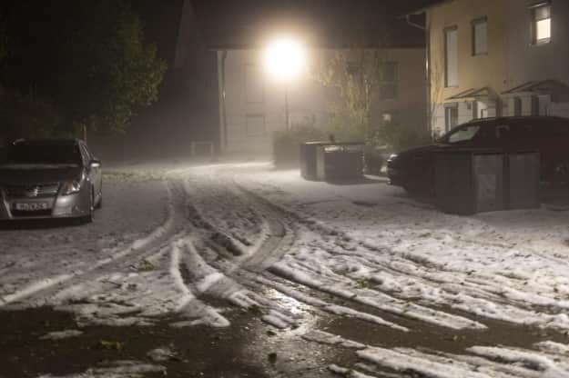 Обильный град «заснежил» посреди лета улицы в Баварии